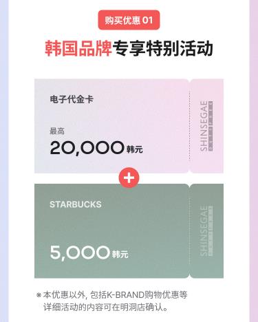 额外赠送10,000韩元购物券(单笔消费满50美元可用)
