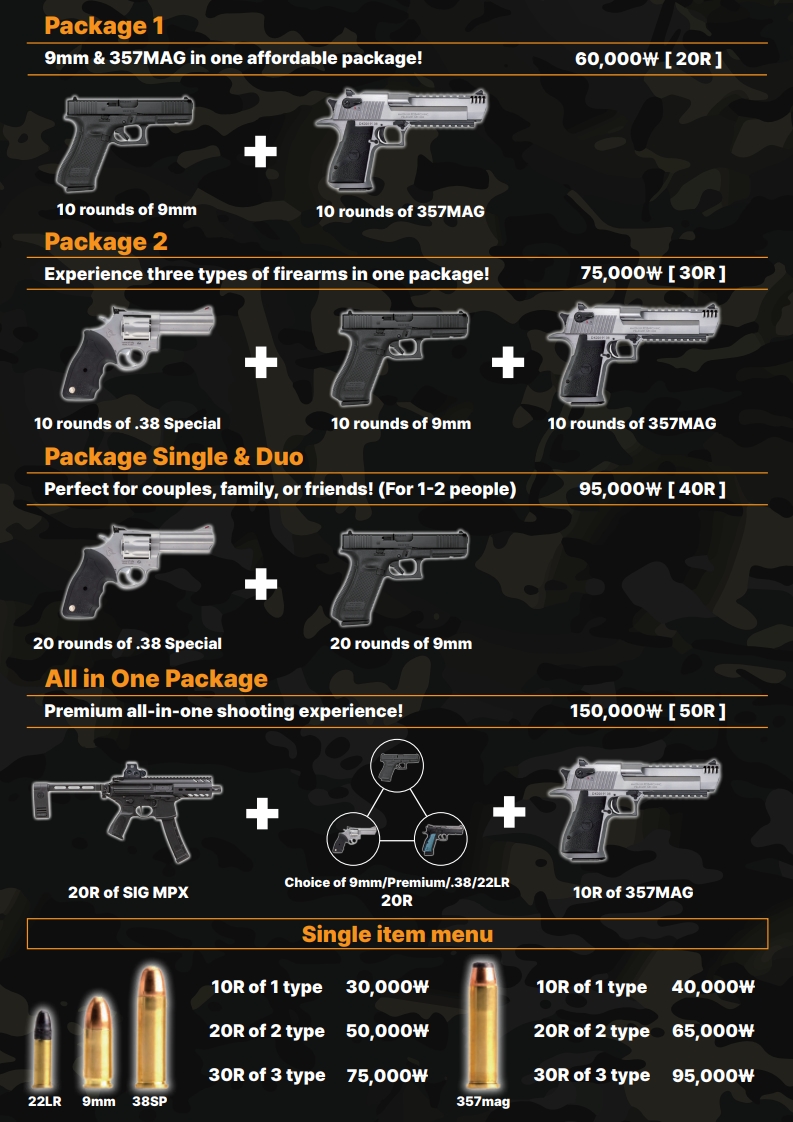 En el Campo de Tiro Gangnam, te convertirás en un héroe de acción, experimentando la emoción de manejar armas de fuego que solo has visto en películas y programas de televisión.