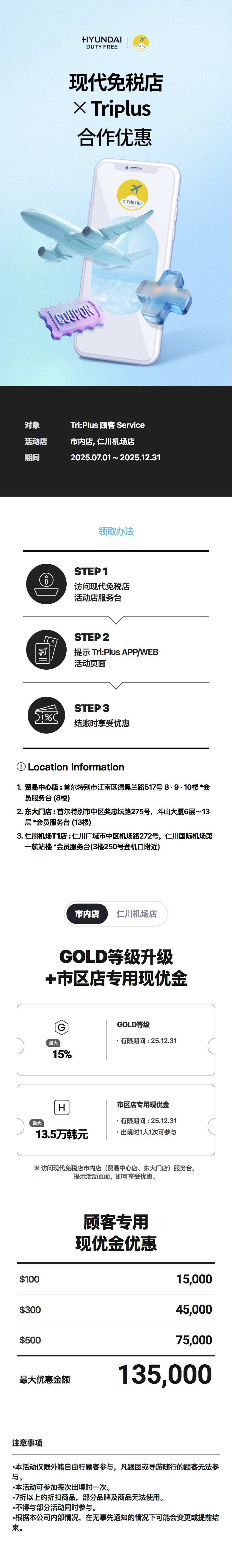 - 使用首尔现代免税店贸易中心优惠券,享受专属购物福利