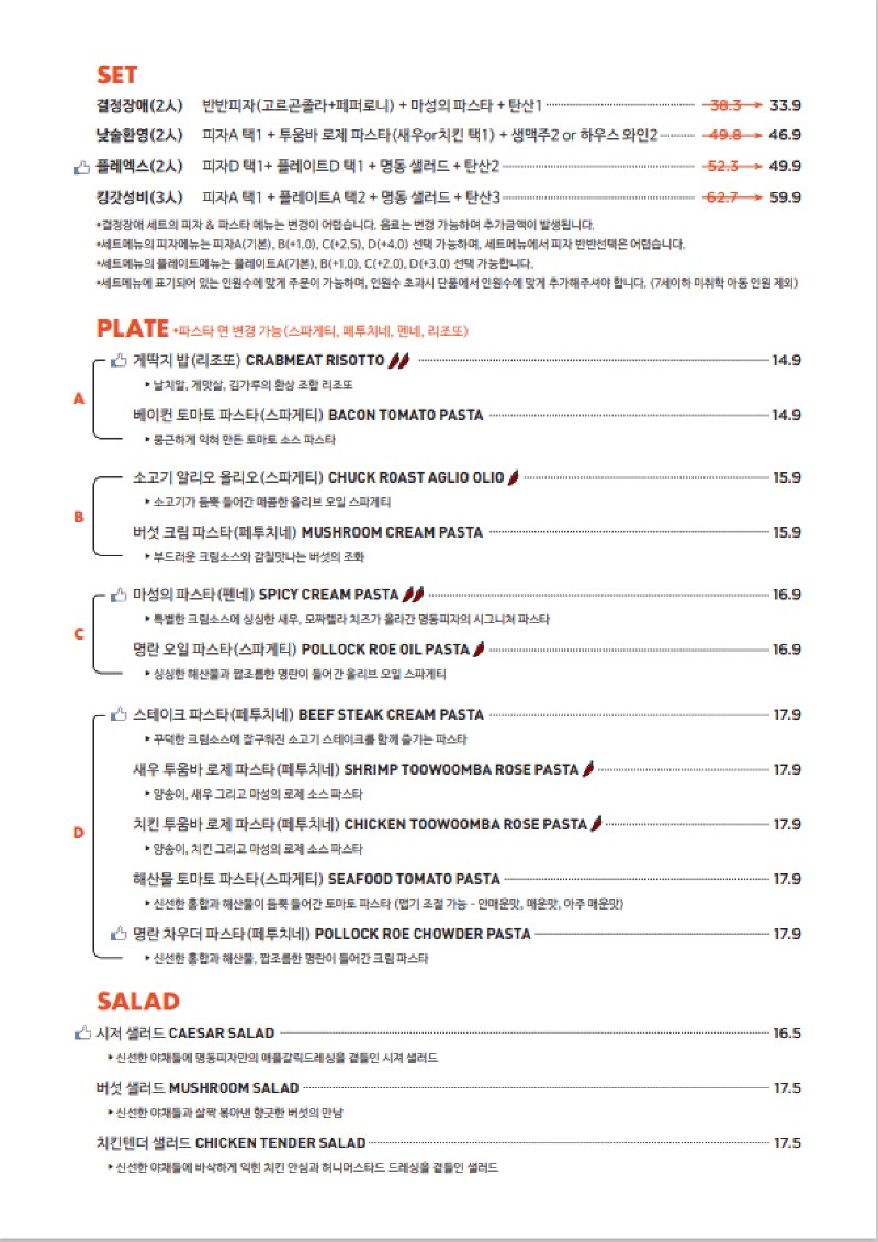 每三個月推出一次新菜單的明洞披薩,確保每次訪問都提供新的味覺和體驗。融合韓國元素的意大利融合菜餚突出了這個地方的獨特性,特別是72小時發酵的麵團和創意融合意麵。