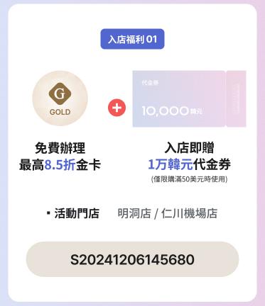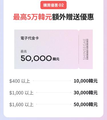 額外贈送10,000韓元購物券(單筆消費滿50美元可使用)