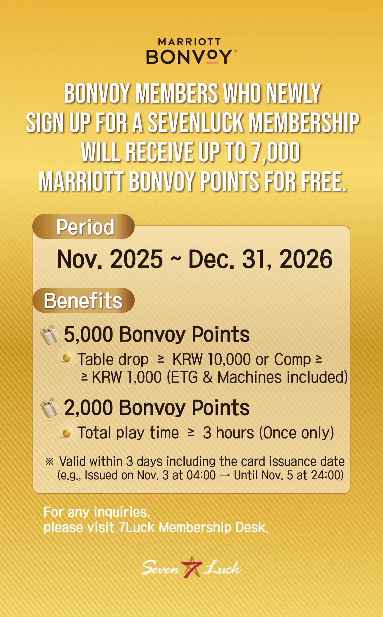 7. Exclusively redeemable at Seven Luck Casino in Seoul Dragon City, Gangnam COEX, and Busan Lotte.
