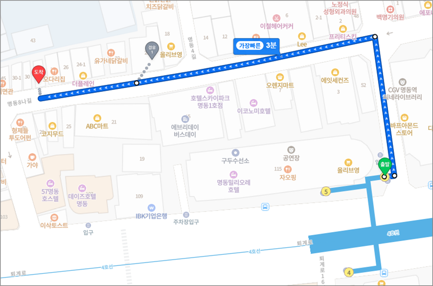 Google Maps can be inaccurate in Myeongdong. Please follow these directions:
