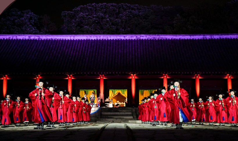 - Inhalt: Eine Aufführung von 100 Musikern, die traditionelle koreanische Instrumente wie das Daegeum, Gayageum und Haegeum spielen.