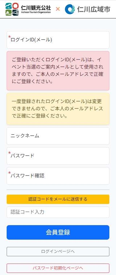 1. 会員登録:五感で楽しむ仁川スタンプツアーの公式サイト 👉👉 [www.incheonstamptour.com]で簡単な会員登録を行います。登録にはメール認証が必要ですので、スパムフォルダーもチェックしてくださいね。