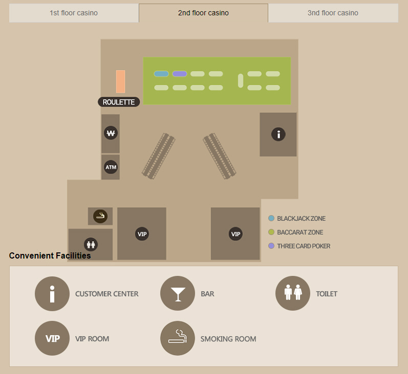 ゲームチップは、開いているテーブルでディーラーからいつでも購入できます。KRW、JPY、USD、CNYが利用可能です。(スロットマシンには現金または専用チケットが必要です。現金を交換する必要がある場合は、両替カウンターをご利用ください。)