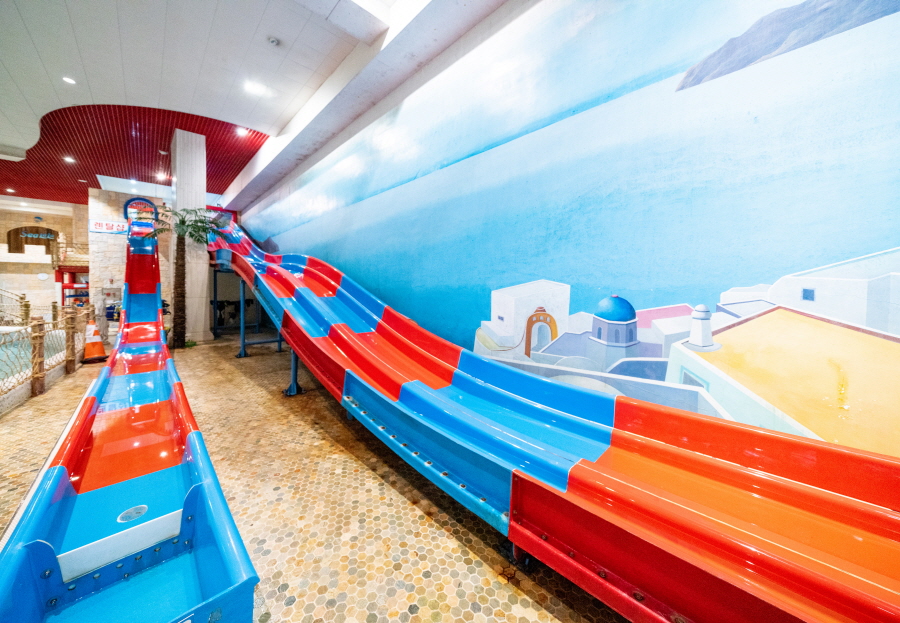 - 스피드 & 매트 슬라이드: 20m의 스피드 슬라이드와 32m의 매트 슬라이드에서 아찔하고 짜릿한 쾌감을 즐겨보세요.