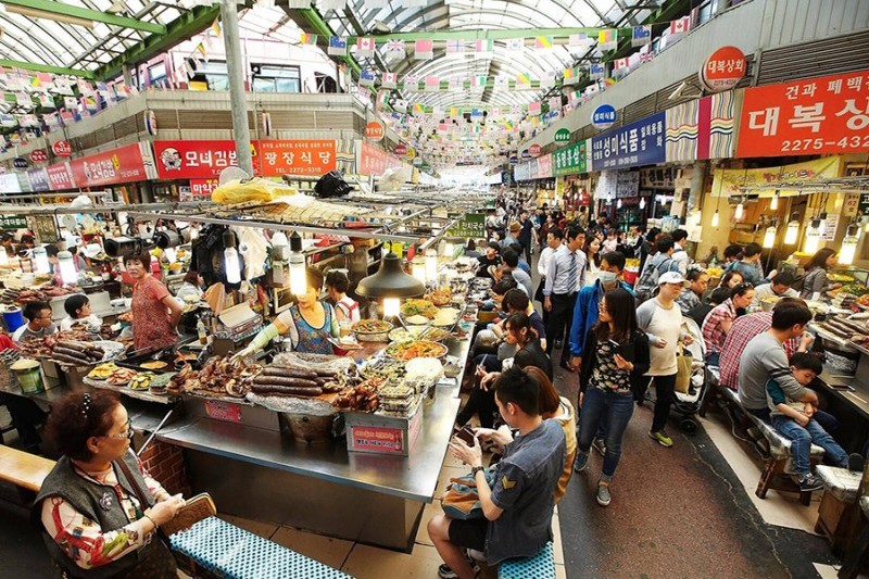 - 12:00: Обед на рынке Гванджанг. Выберите из множества традиционных корейских уличных блюд и насладитесь их подлинными вкусами.