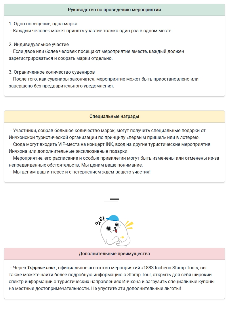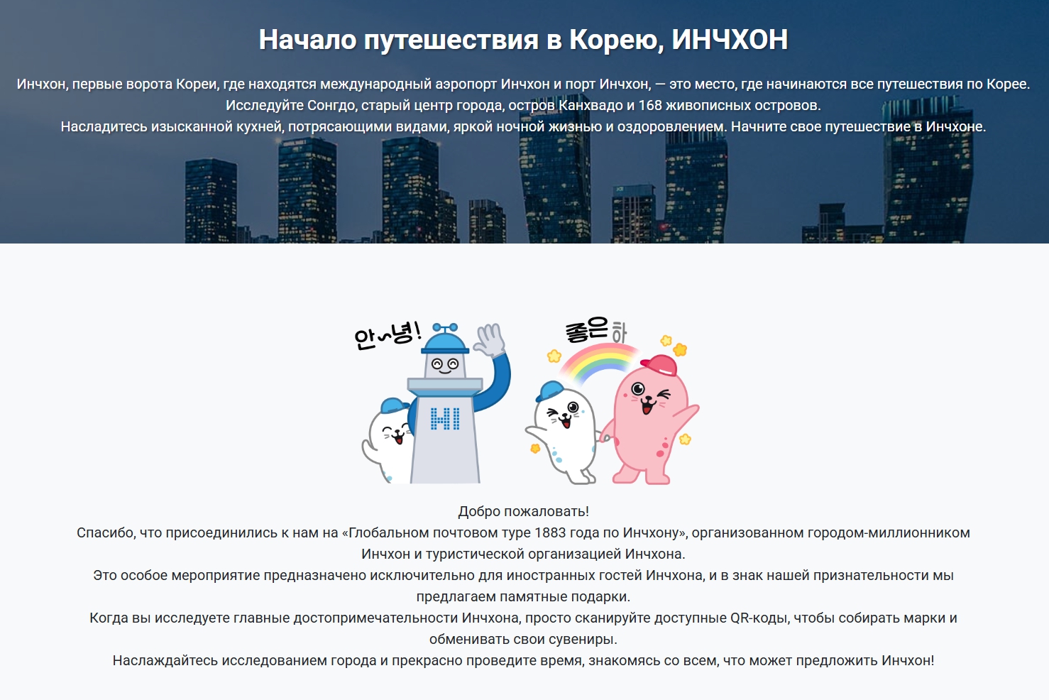 О: 1. Зарегистрируйтесь на сайте «1883 Incheon Global Stamp Tour».