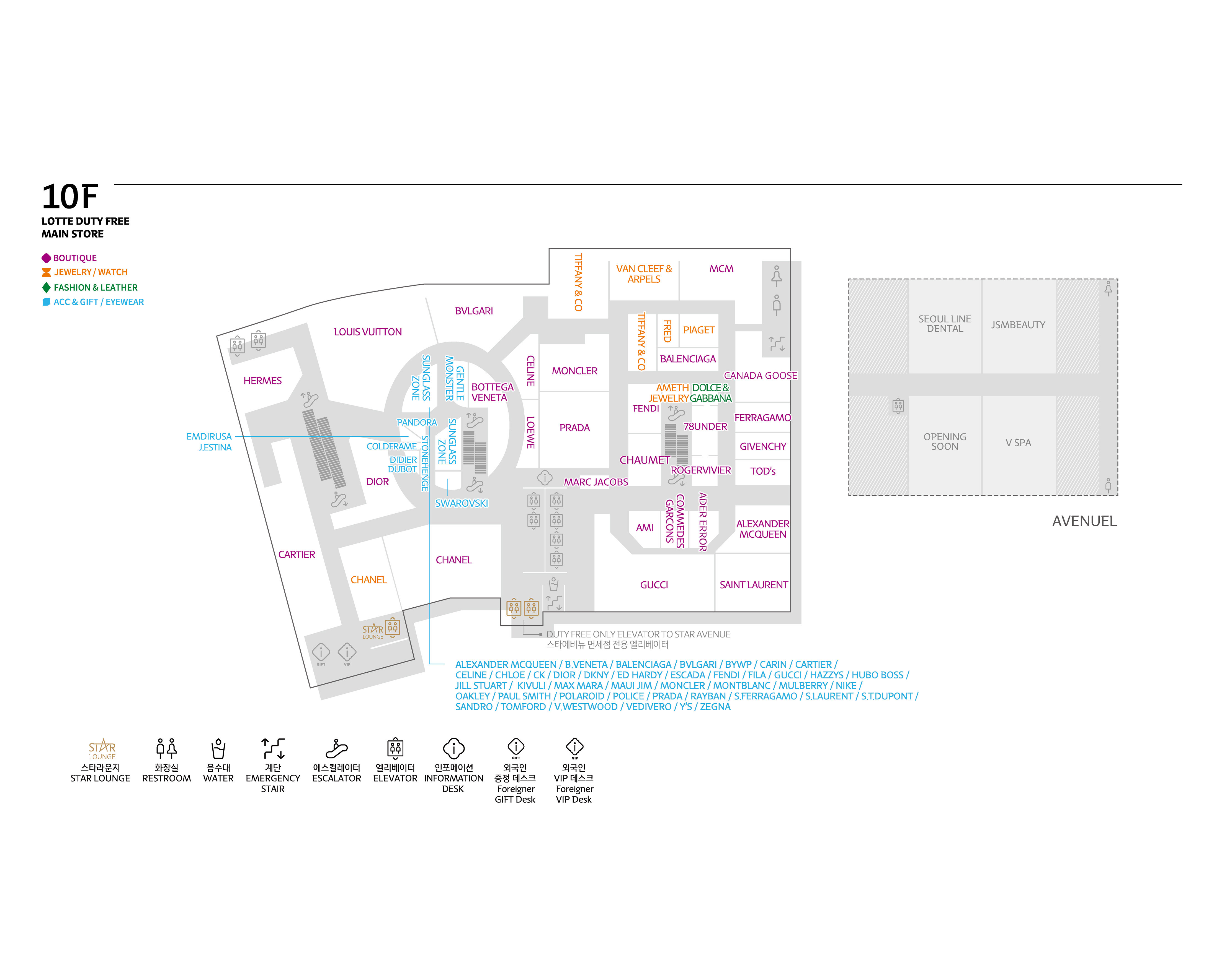 🎯 Brand List at Lotte Duty Free Korea Myeong-dong Main Store