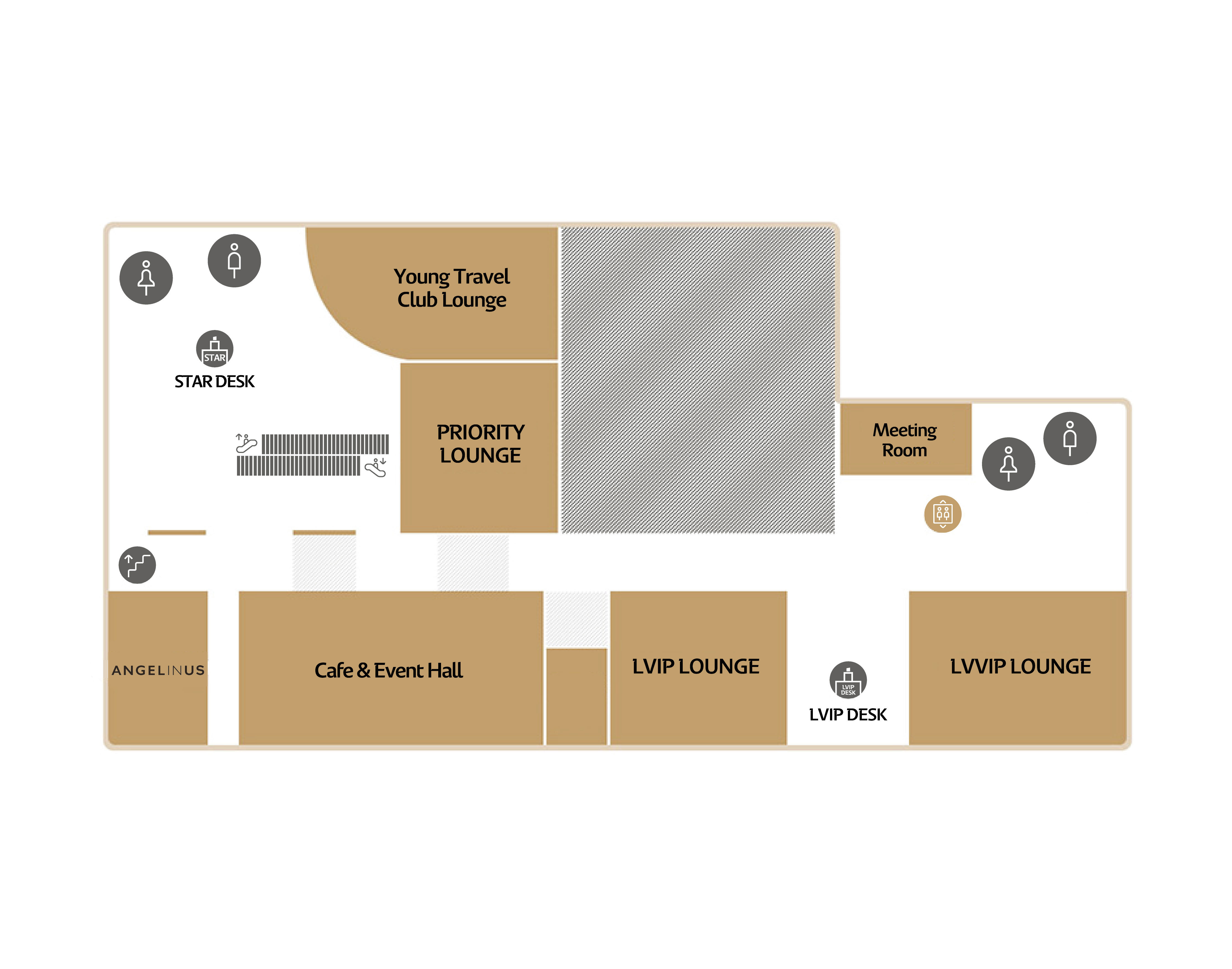Star Desk, Young Travel Club Lounge, Priority Lounge, Meeting Room, Angelinus, Cafe & Event Hall, LVIP Lounge, LVVIP Lounge, LVIP Desk