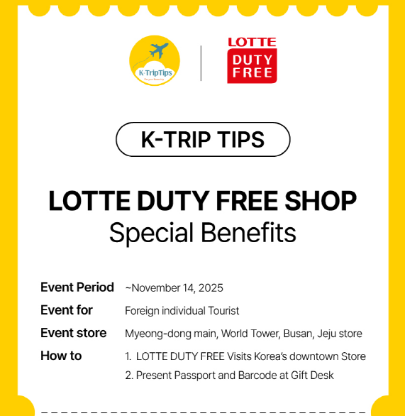 Сделайте шопинг в Lotte Duty Free Busan еще приятнее с эксклюзивными скидочными купонами от K-TripTips. Вы можете получить такие преимущества, как повышение до уровня GOLD, бонусы LDF PAY и дополнительные скидки на определенные бренды. Посетите K-TripTips, чтобы узнать о последних предложениях и сделать свои покупки еще более выгодными.