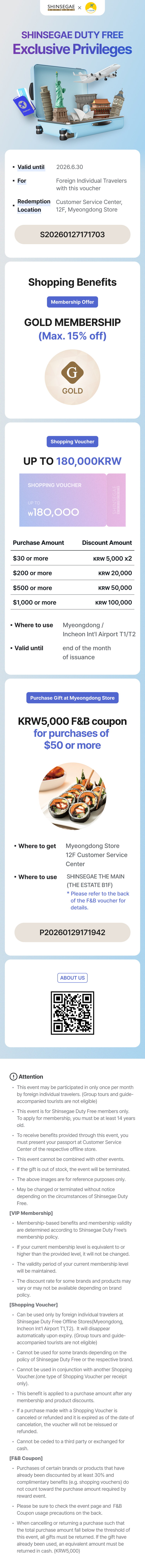 - Шопинг-ваучеры и купоны выдаются только зарегистрированным членам Shinsegae Duty Free.